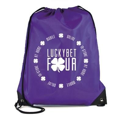 210d Polyester Drawstring Bag with Black PU Corners & Black String. Minimum Quantity: 25.