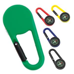Compass On Carabiner Clip. Colours: Black, Red, Green, Yellow, Blue. Minimum Quantity: 250