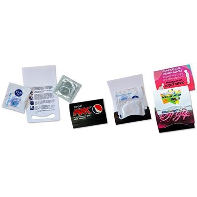 Card Wrap Containing One Foil Wrapped Ce Approved Regular Condom & 5ml Lubricant Sachet. Branded wit...