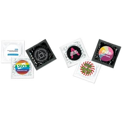 Each Foil Wrapper Contains One Ce Approved 100% Latex Regular Condom. Branded with Full Colour, Digi...