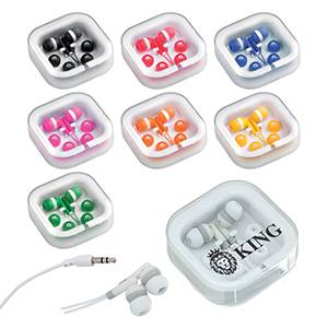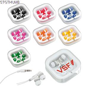 Earphones in PVC Housed in a Triangular Ps Case. Cable Length 120 Cm. Minimum Quantities Apply.